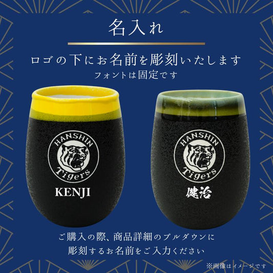 【阪神タイガース ロゴ入り 美濃焼カップ(丸型) ペア 印刷付き木箱入り】 丸虎ロゴを彫刻した当店限定商品です!